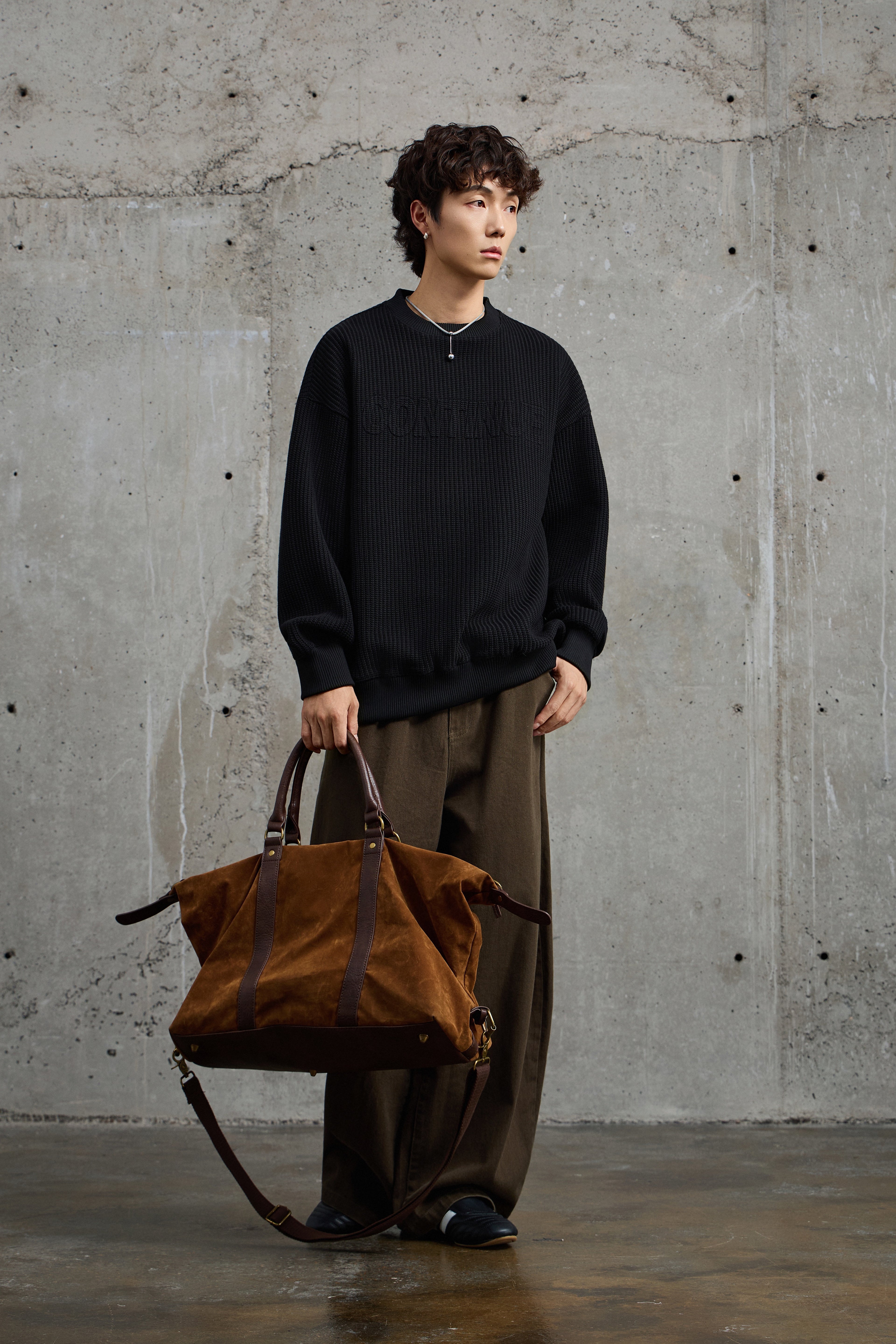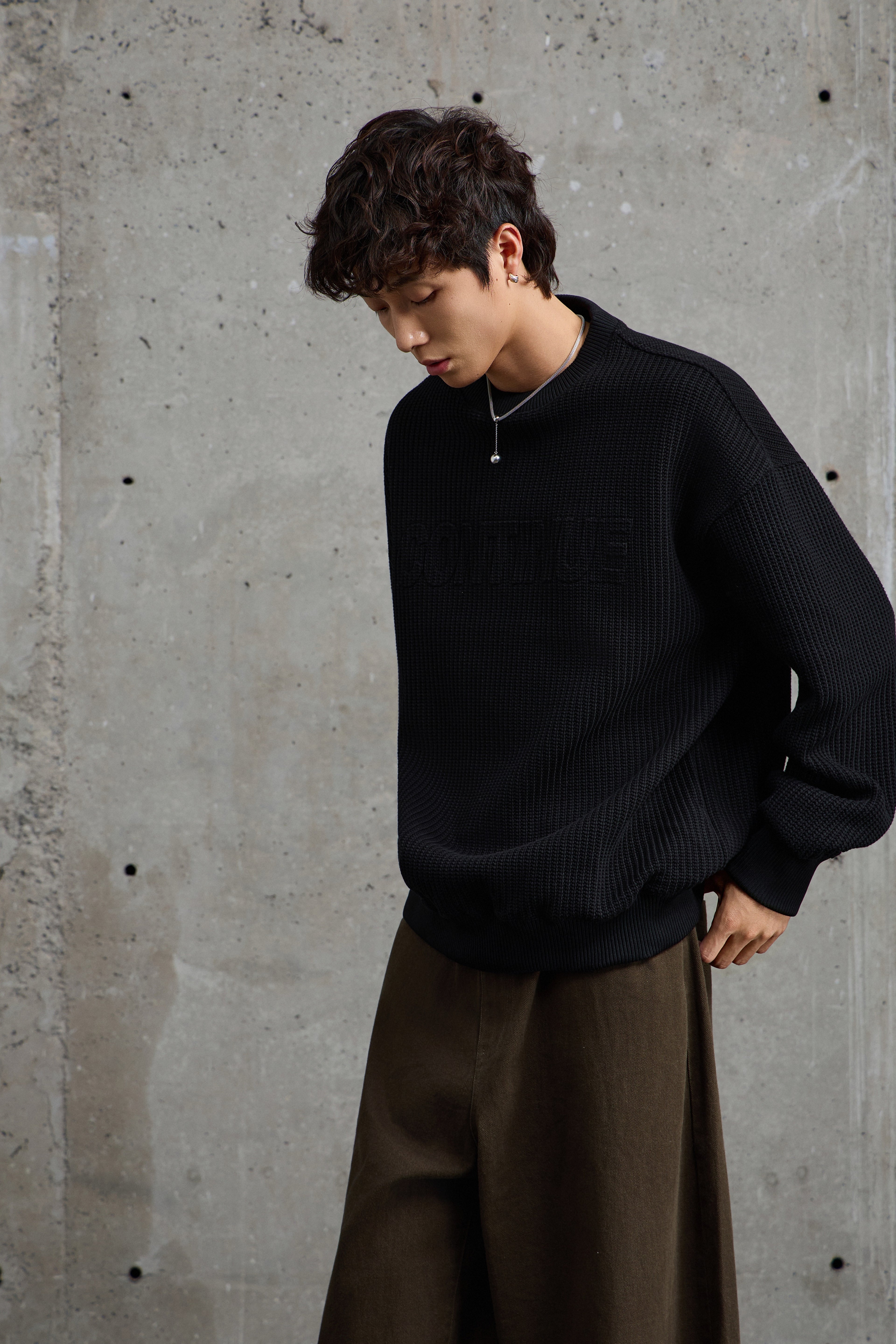 Black Stockinette Sweatshirt with Minimal Embroidered Detail