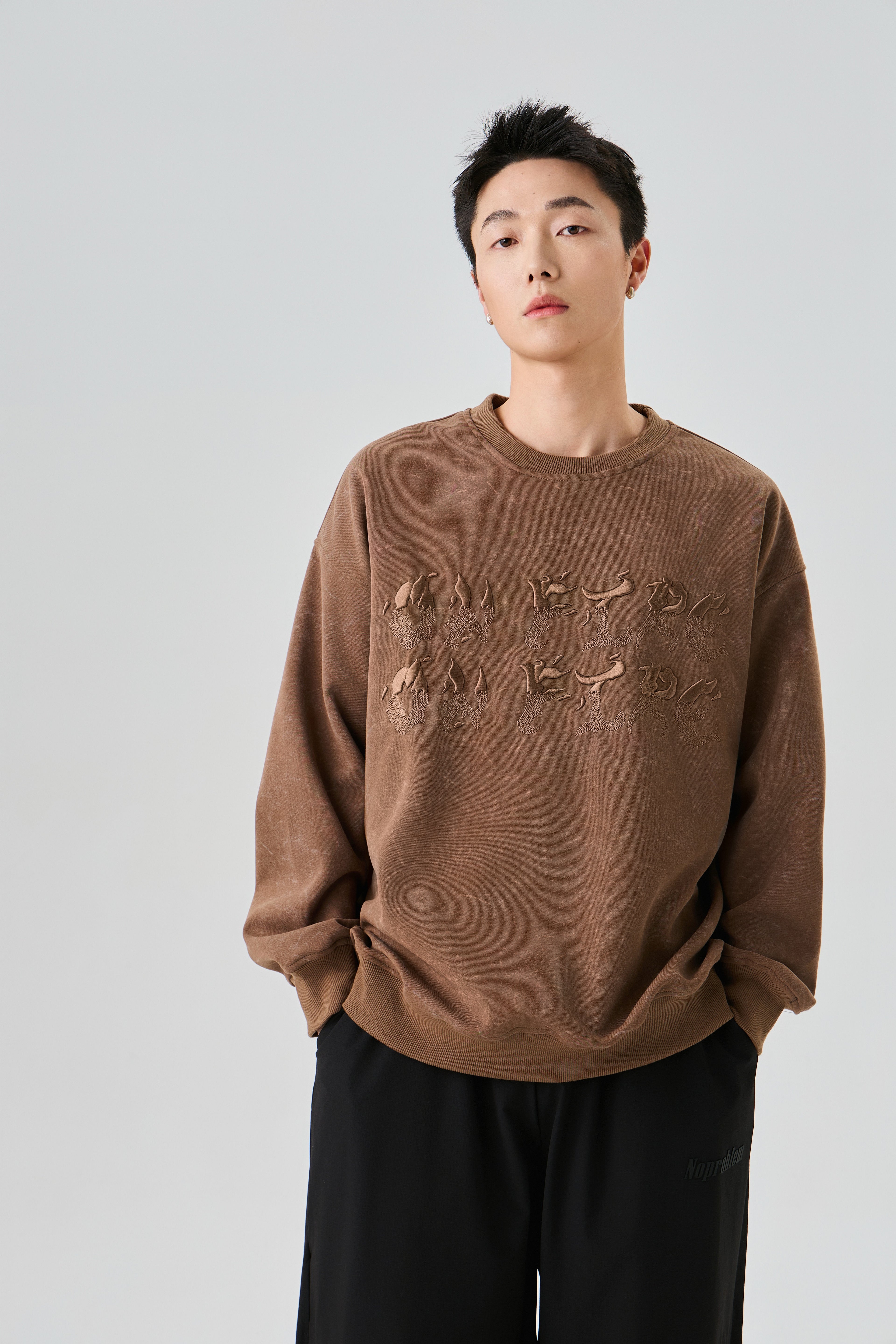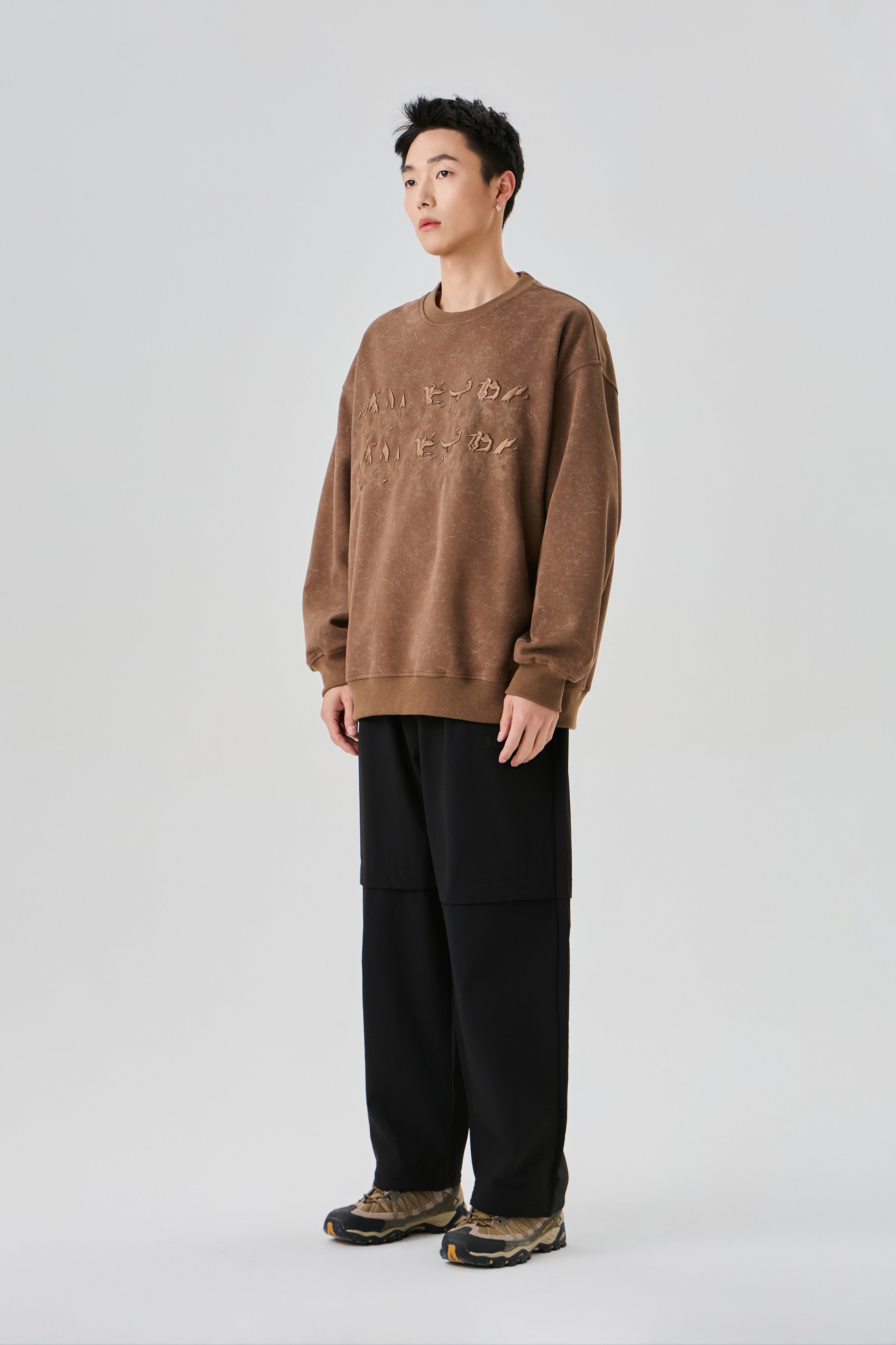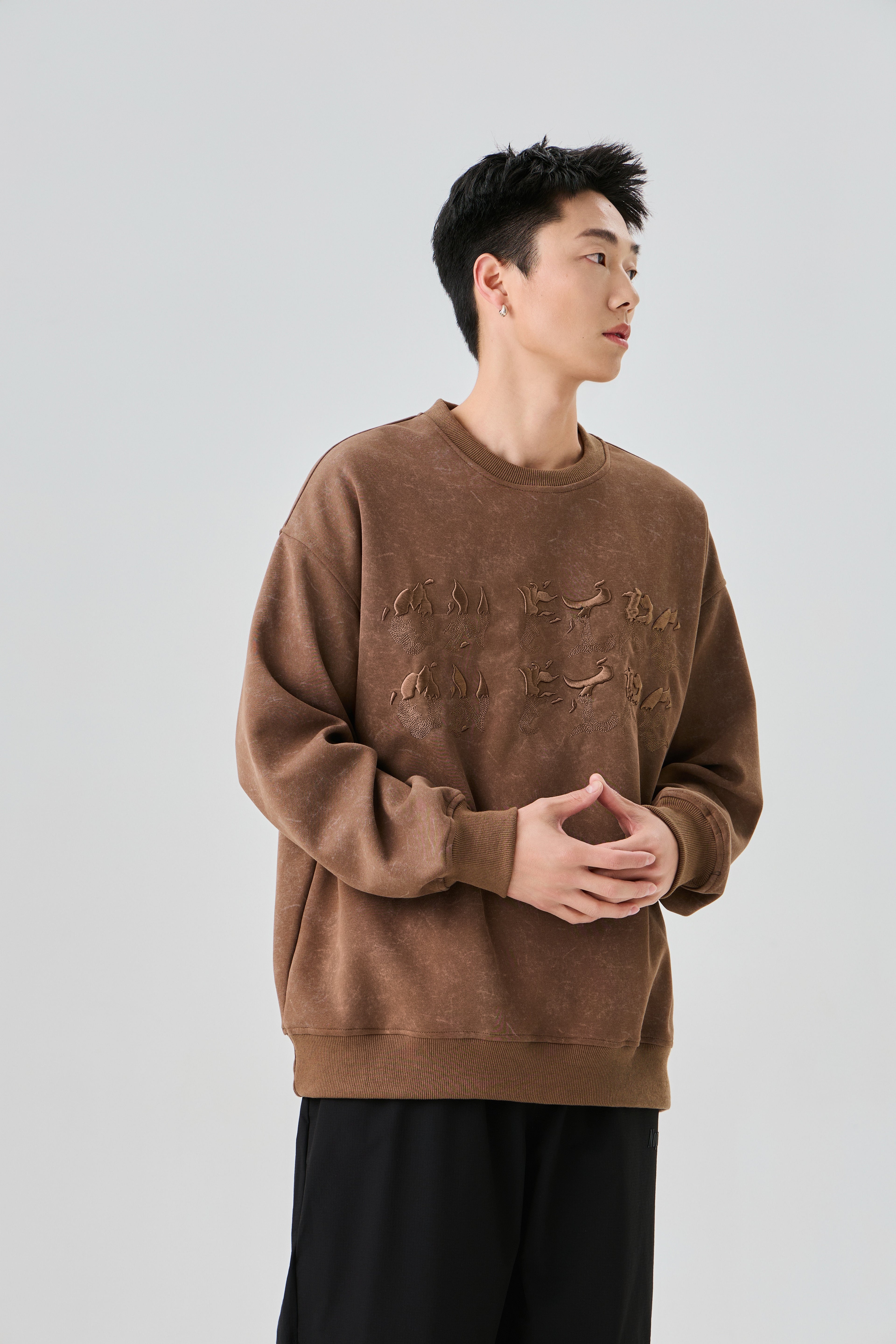 Earthy Brown Sweatshirt with Rugged Acid Wash