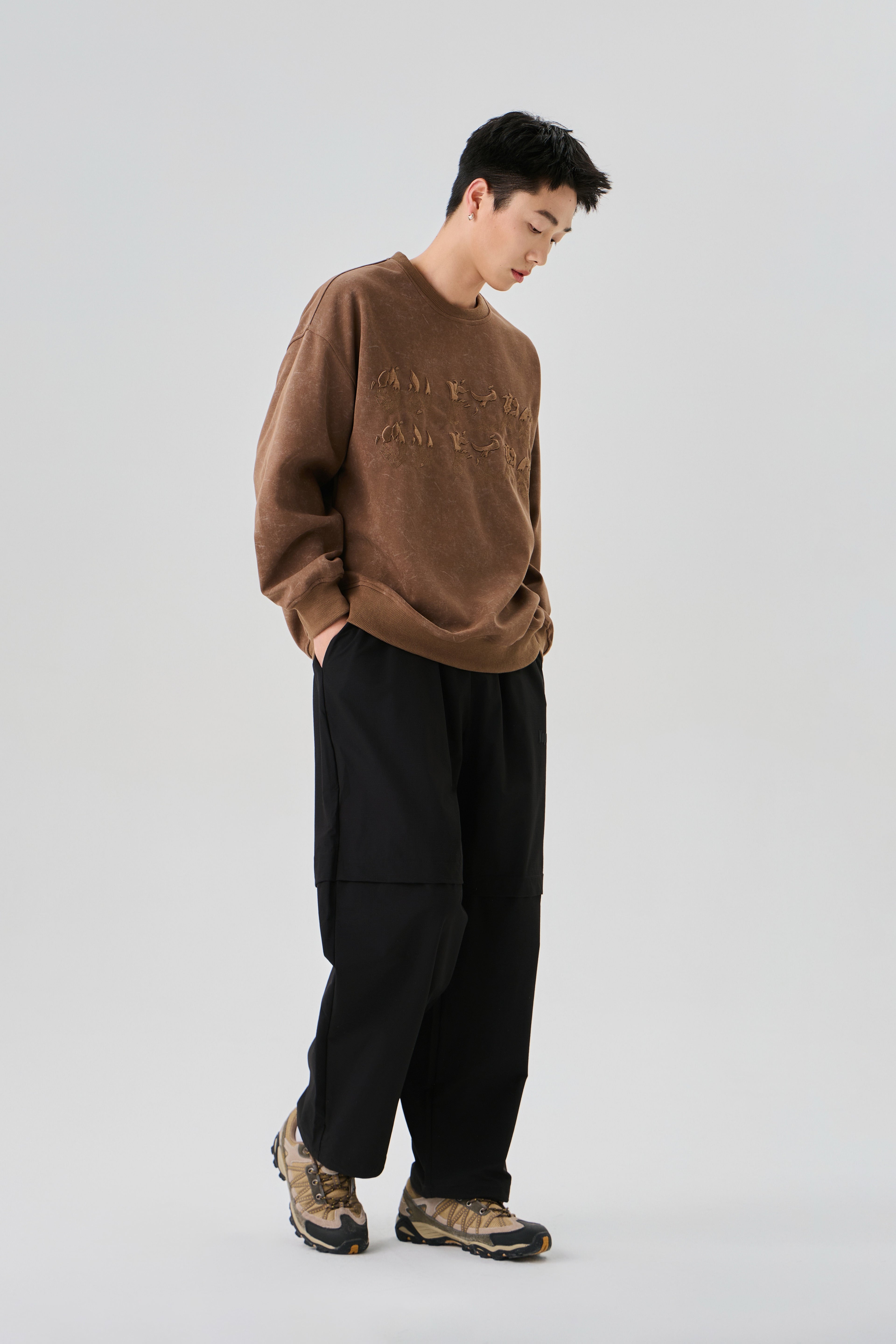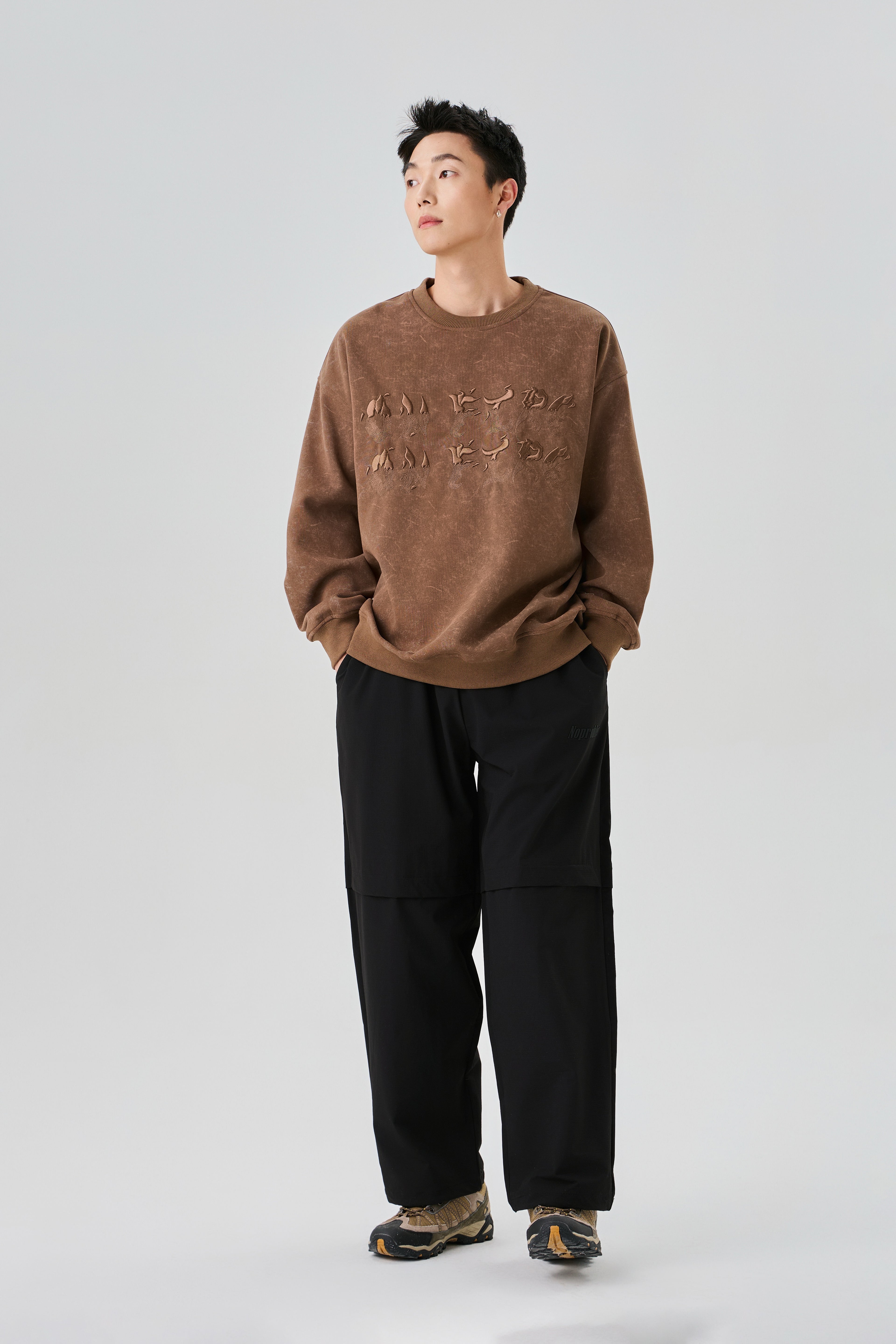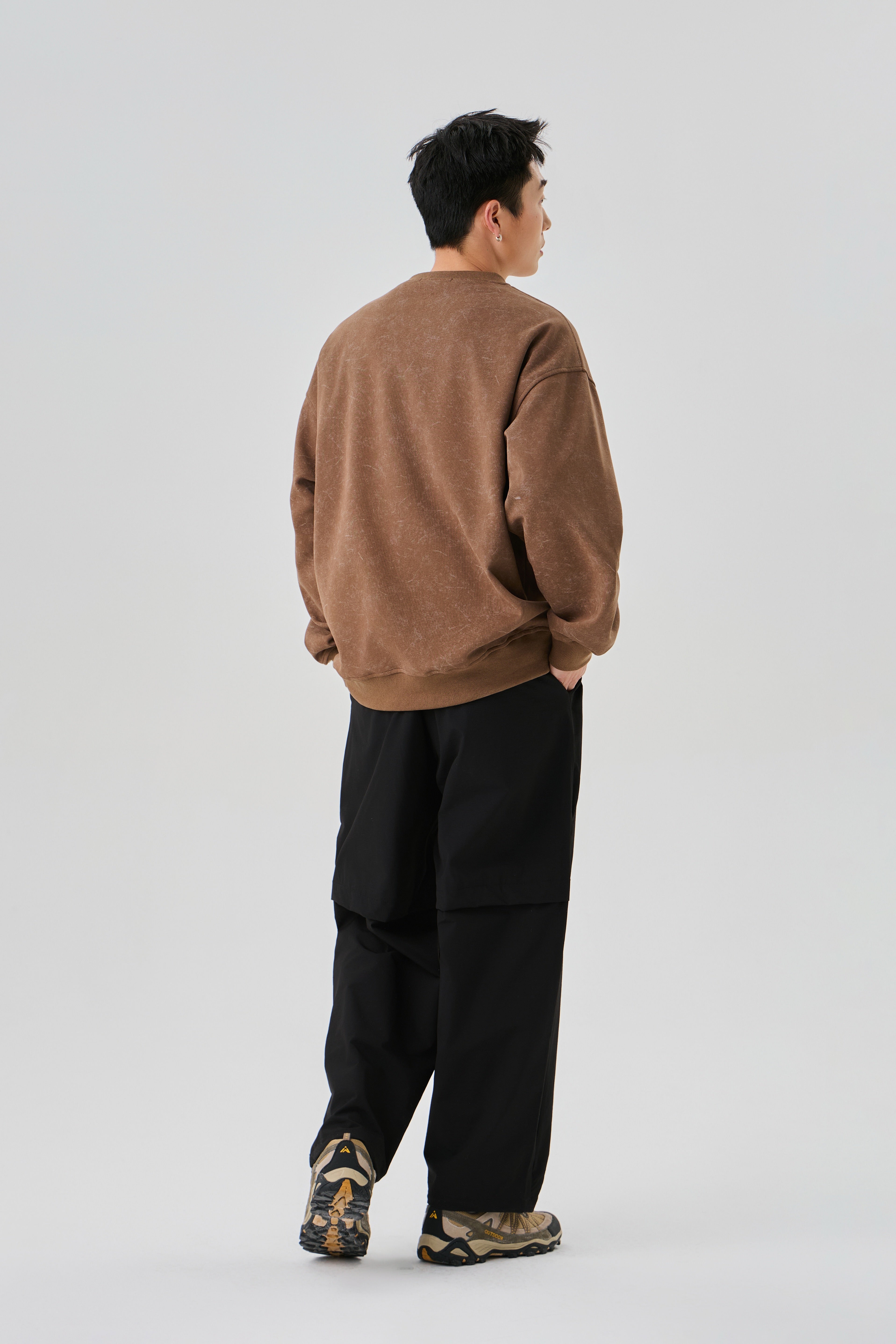 Earthy Brown Sweatshirt with Rugged Acid Wash