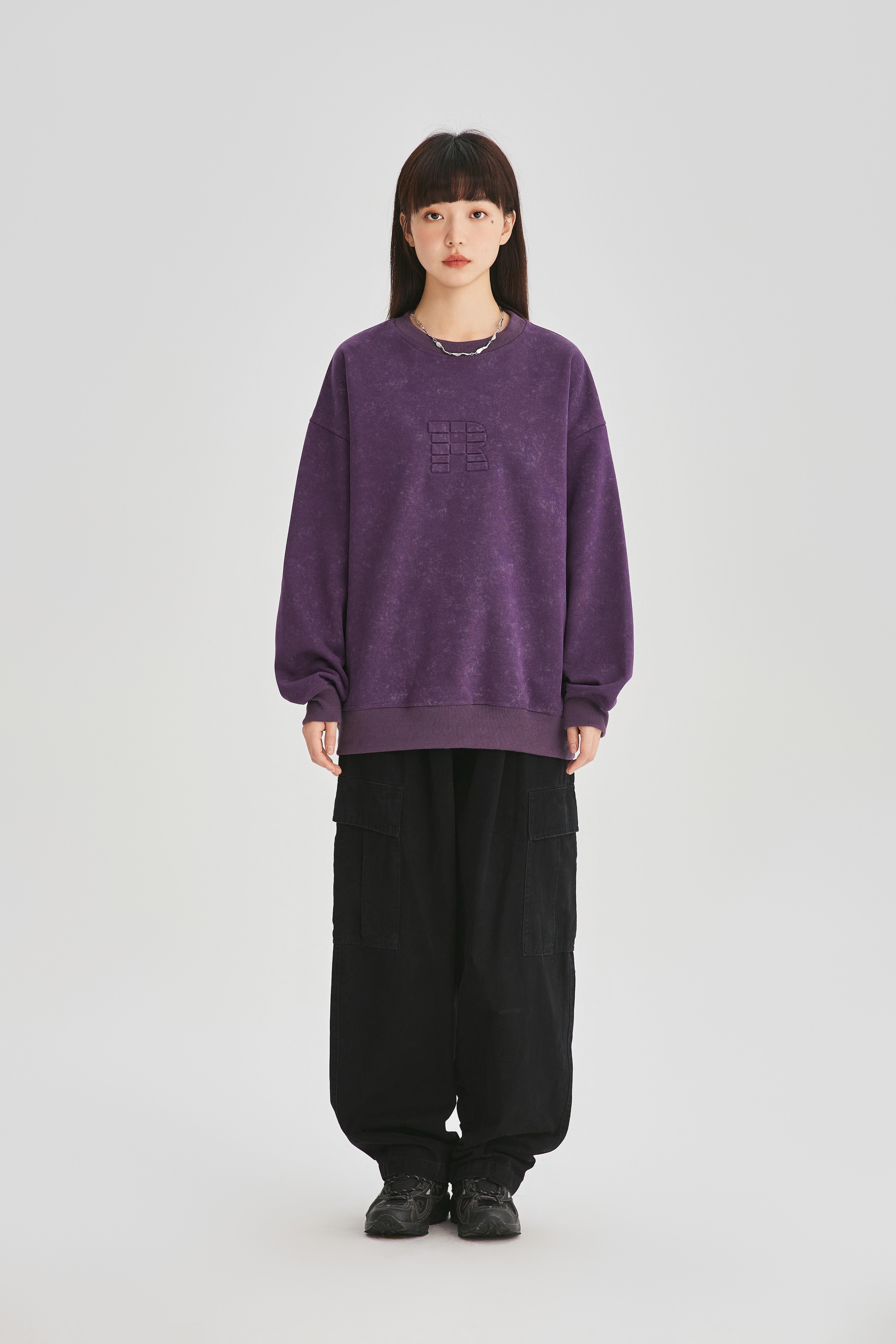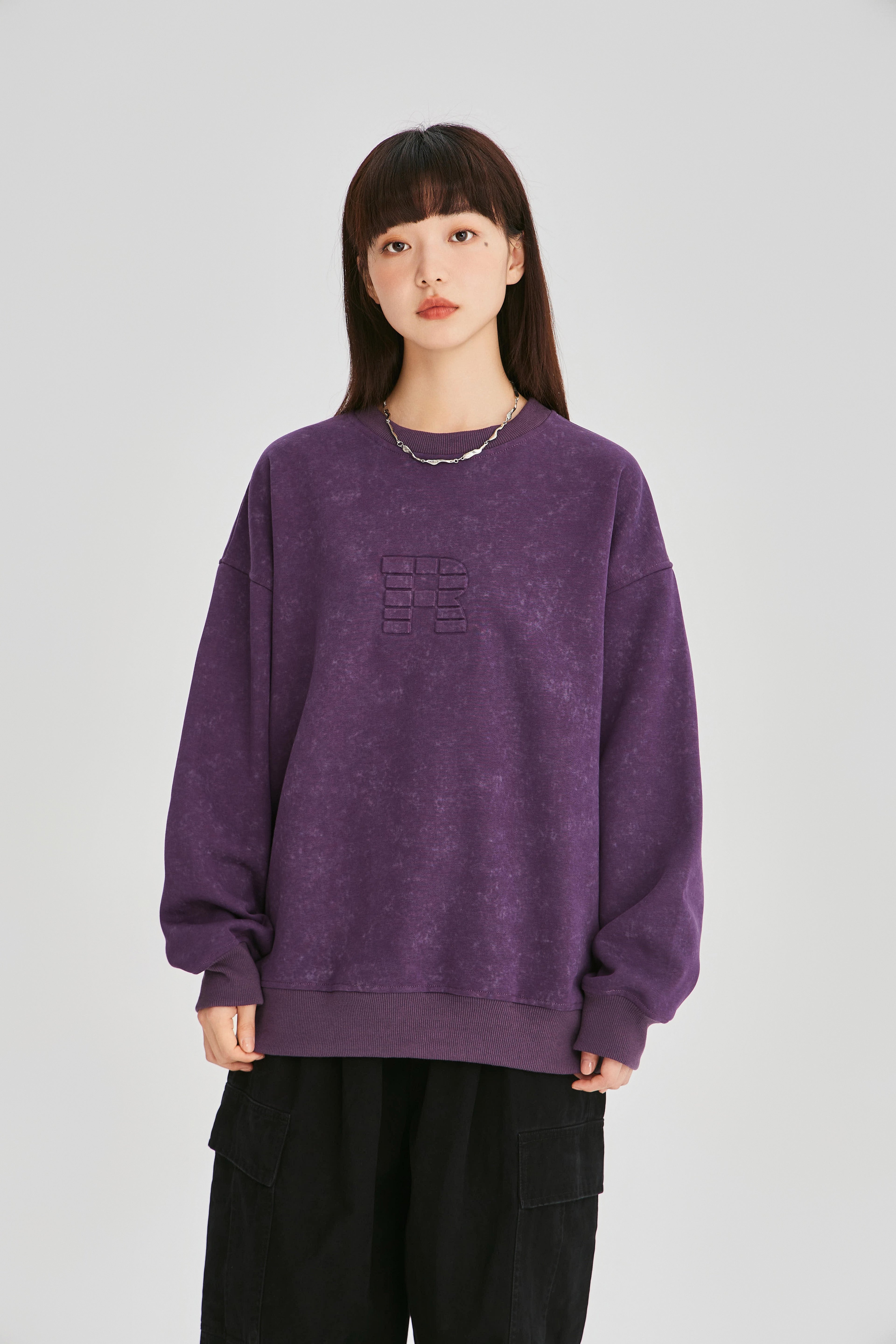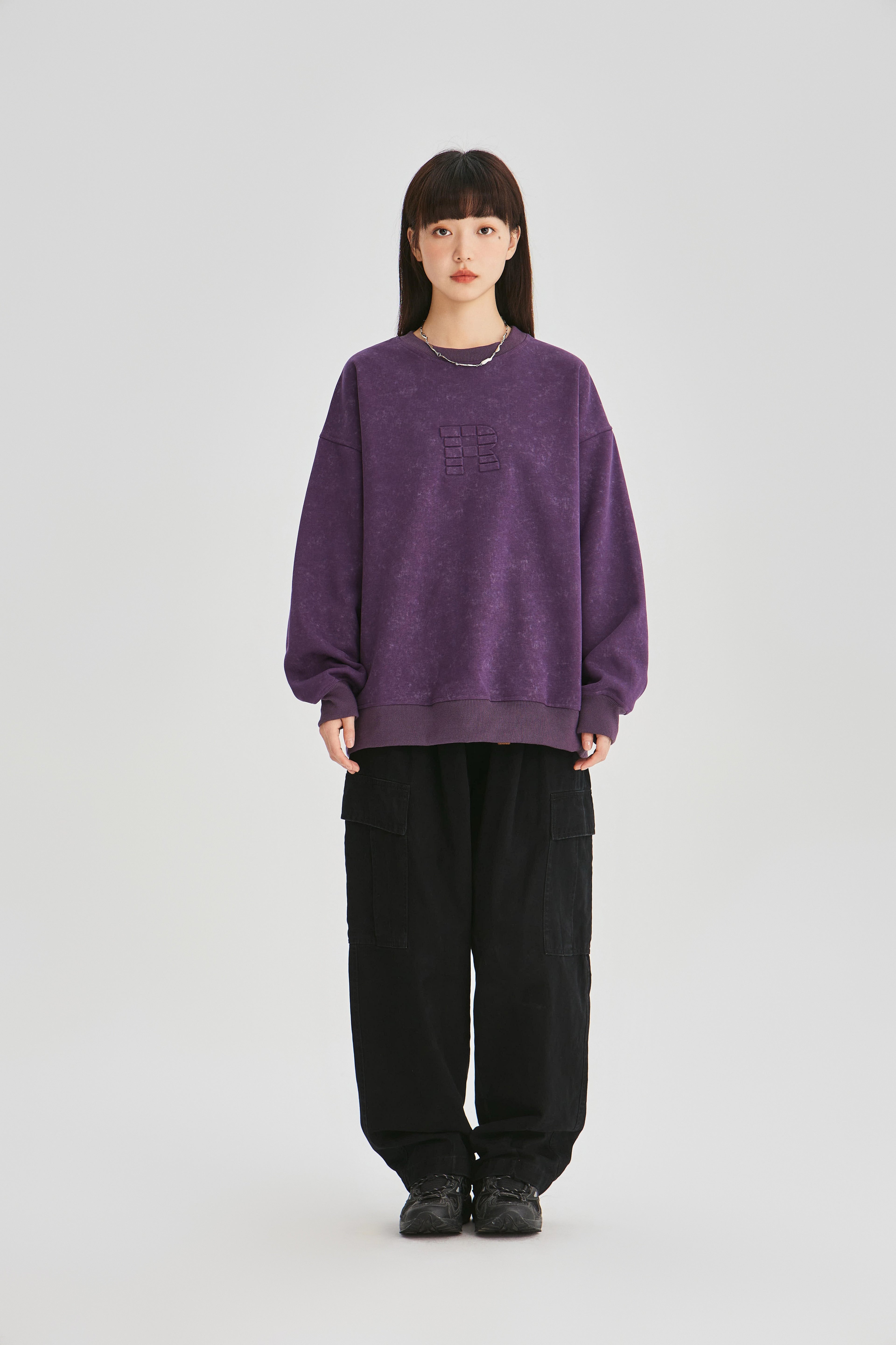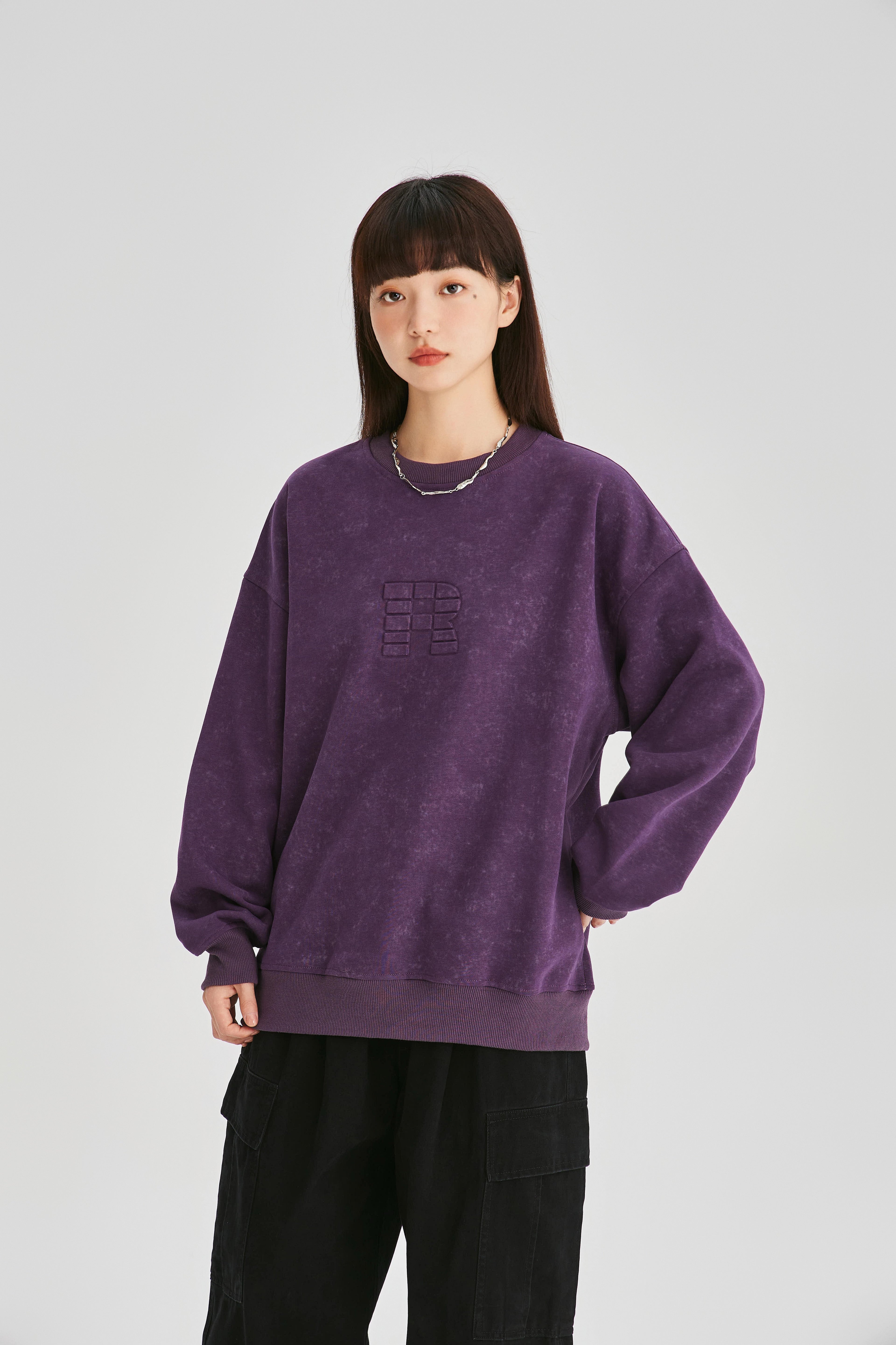 Grape-Tone Sweatshirt with Stone-washed Finish