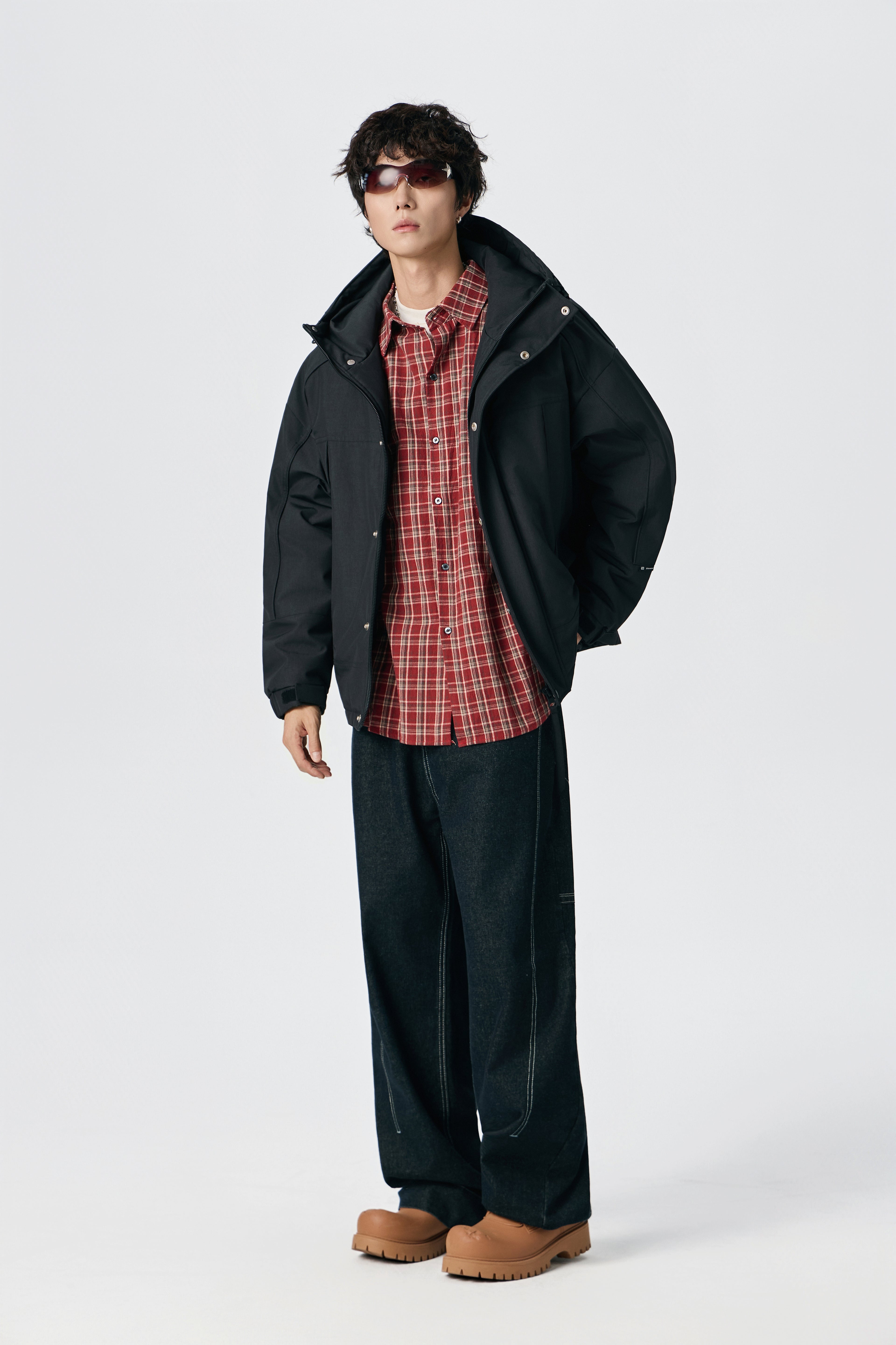 Black Chequered Plaid Utility Shacket