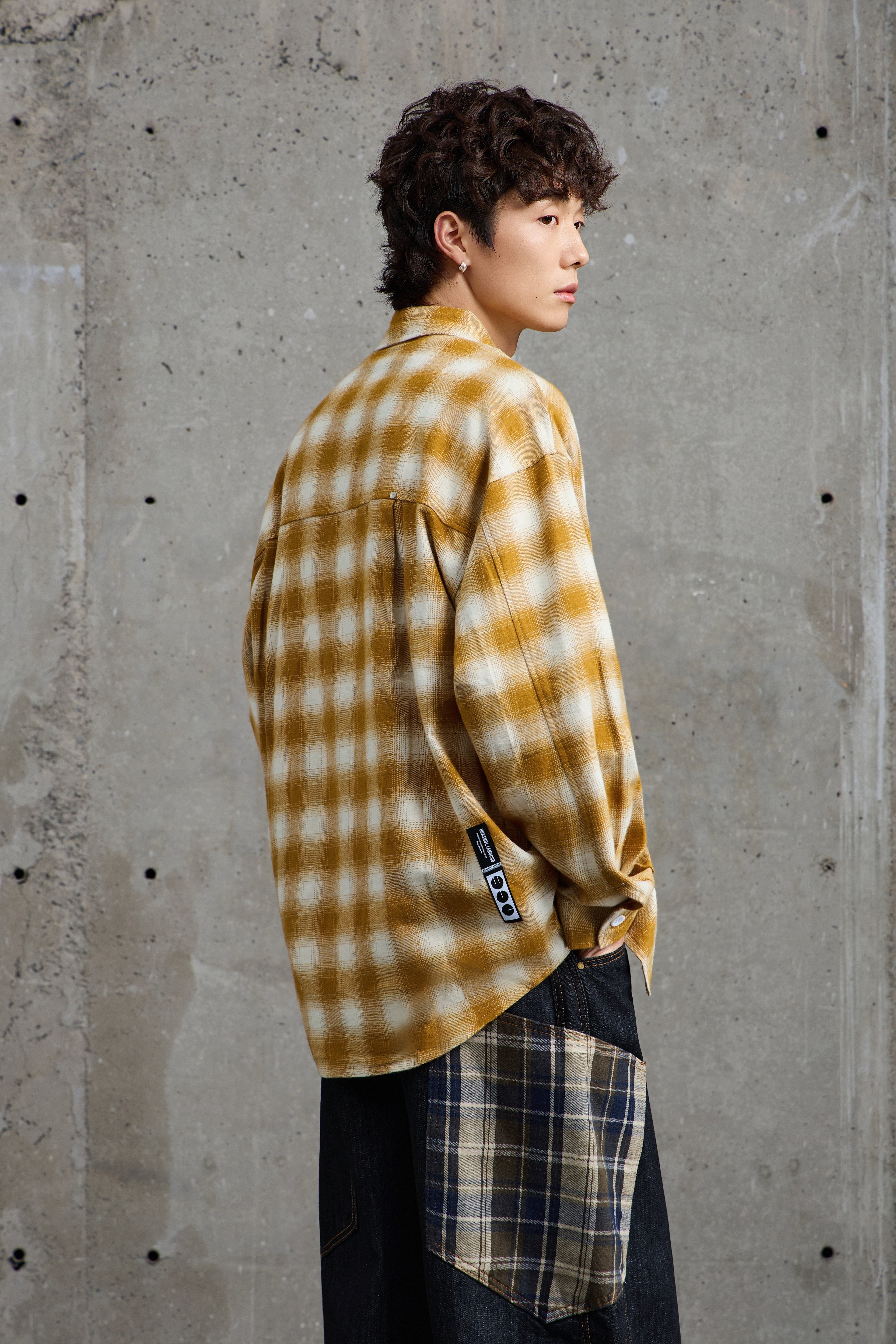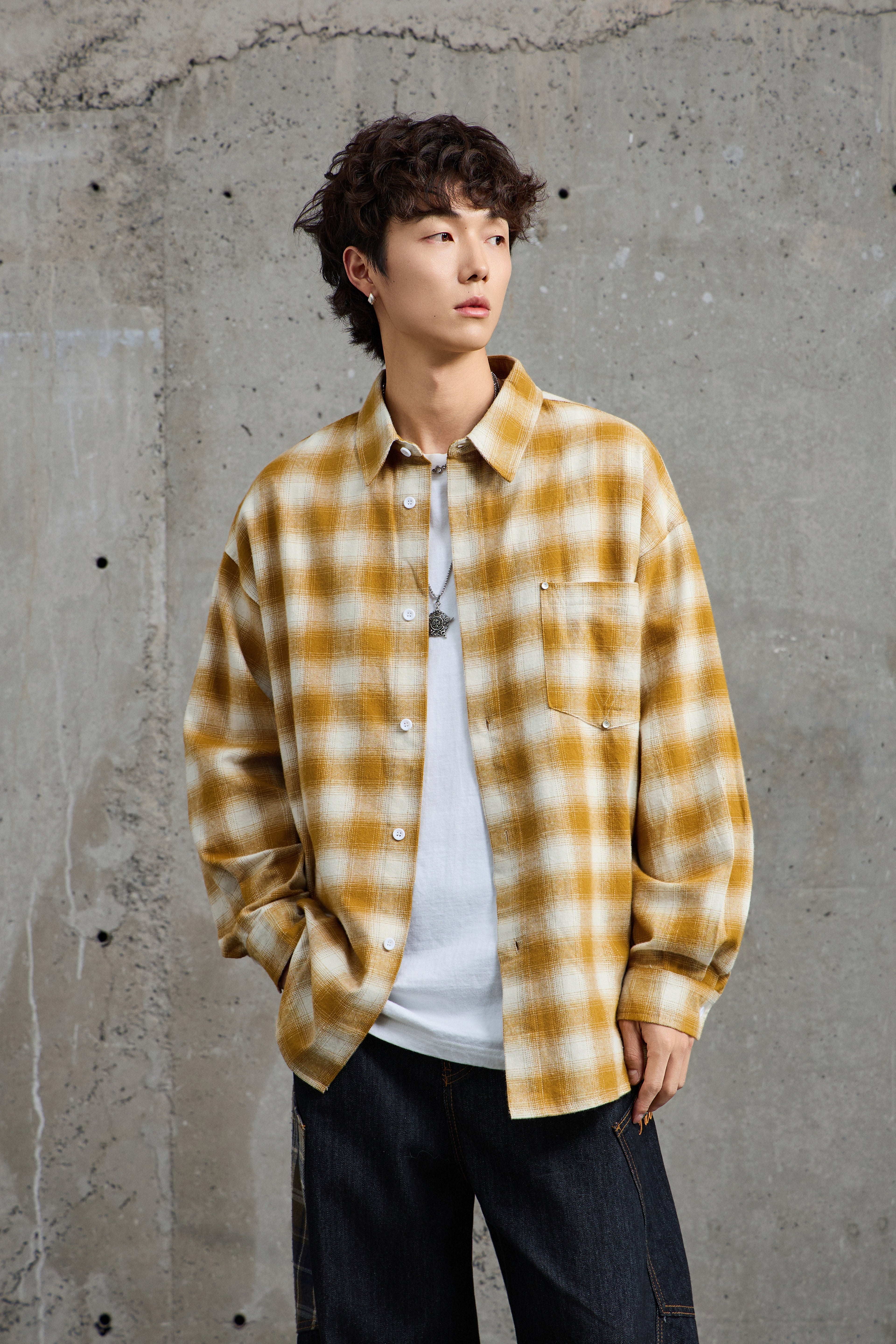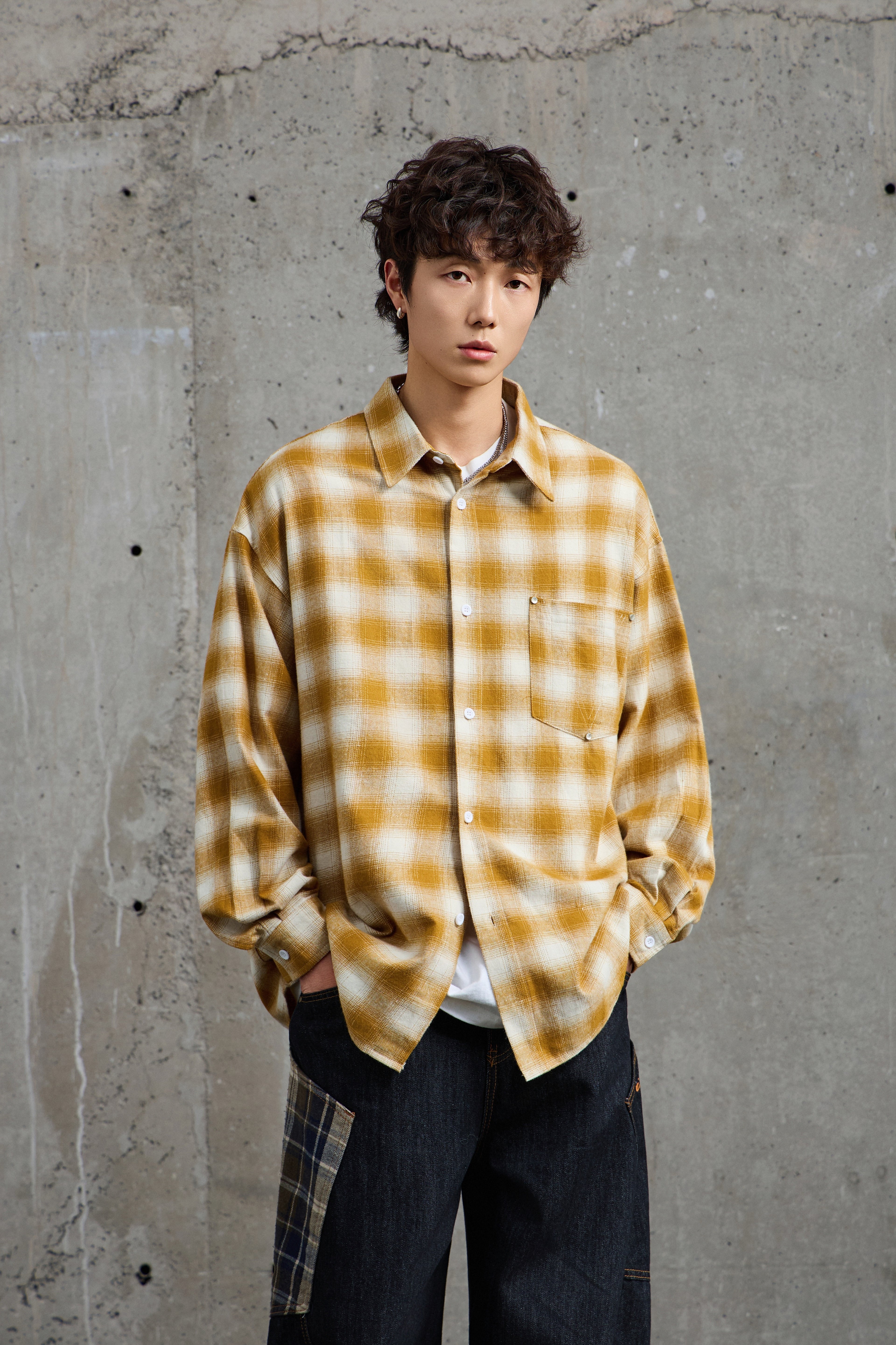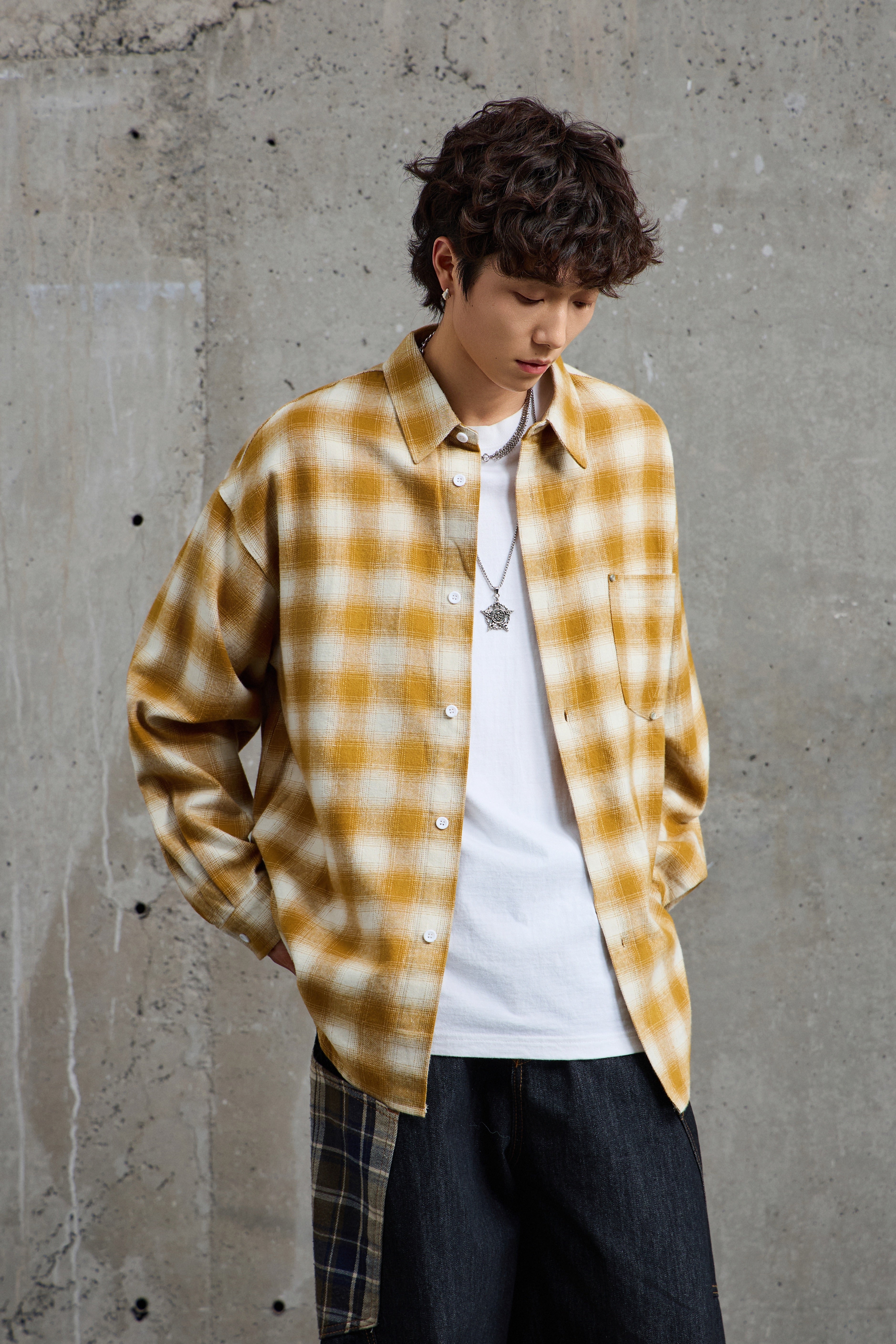 Mustard White Plaid Flannel Overshirt