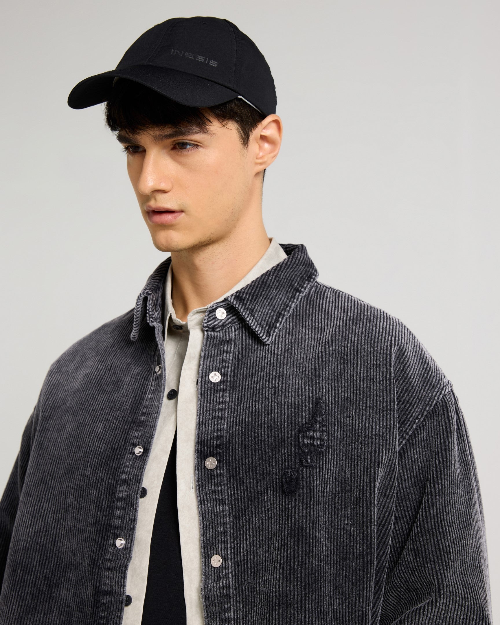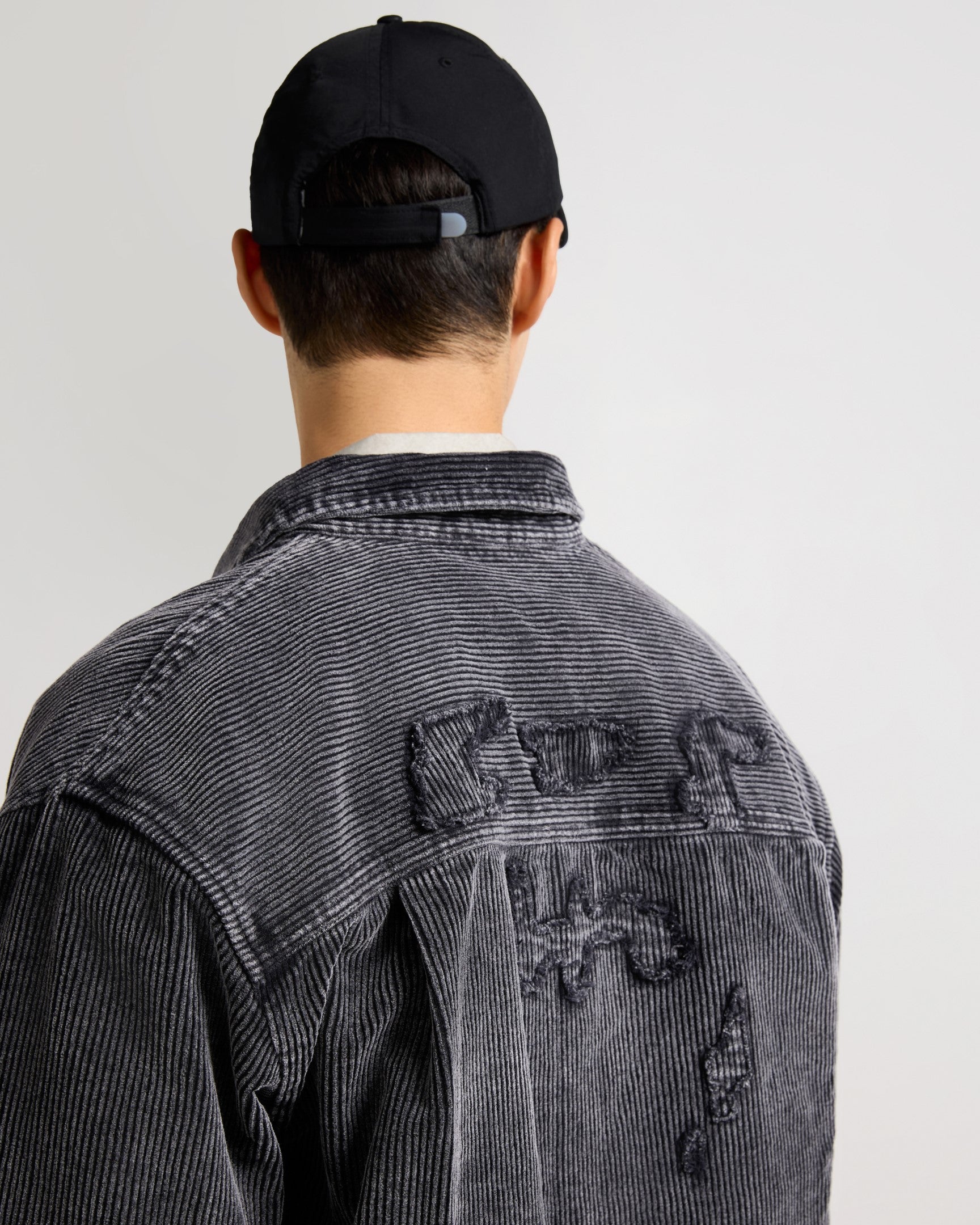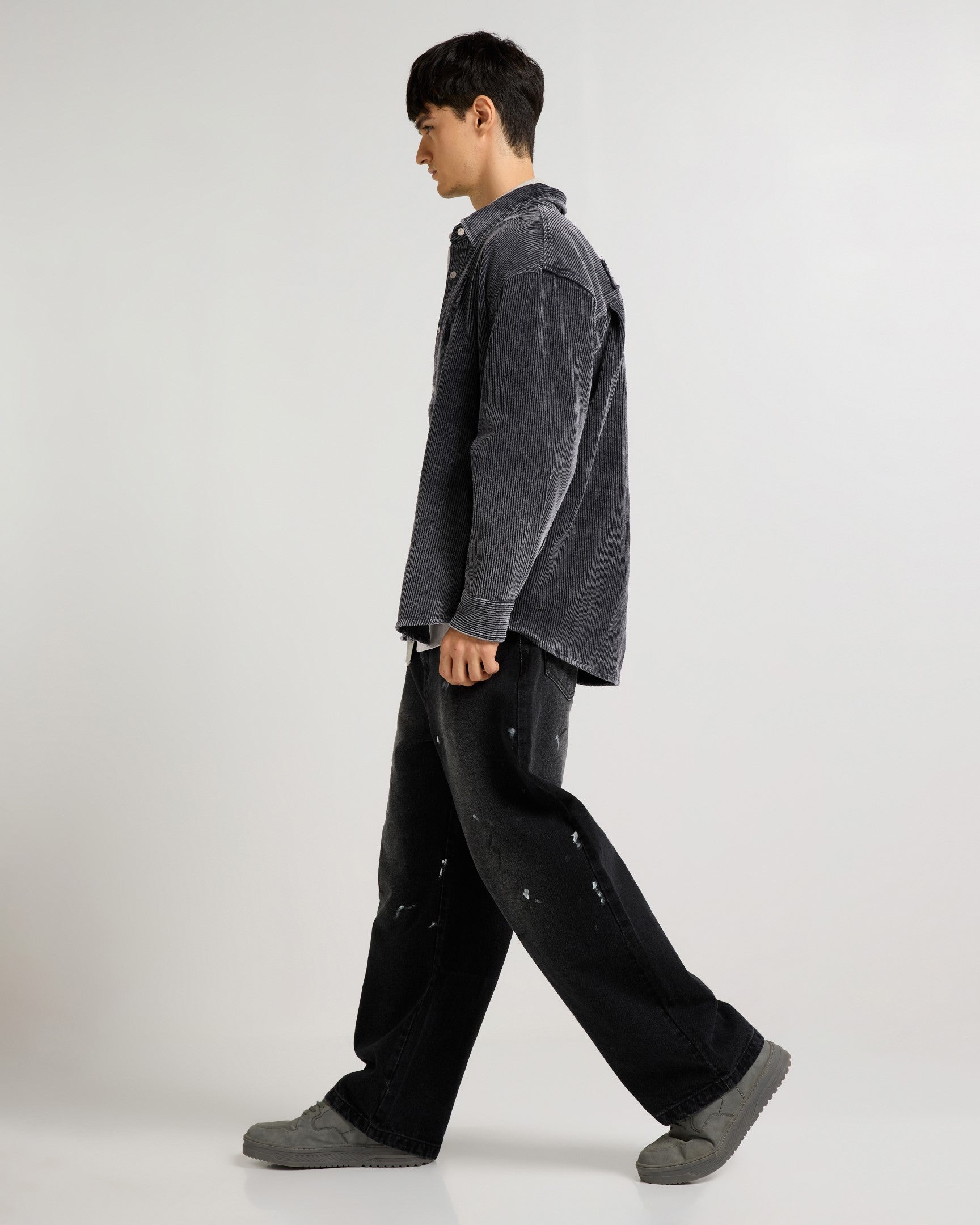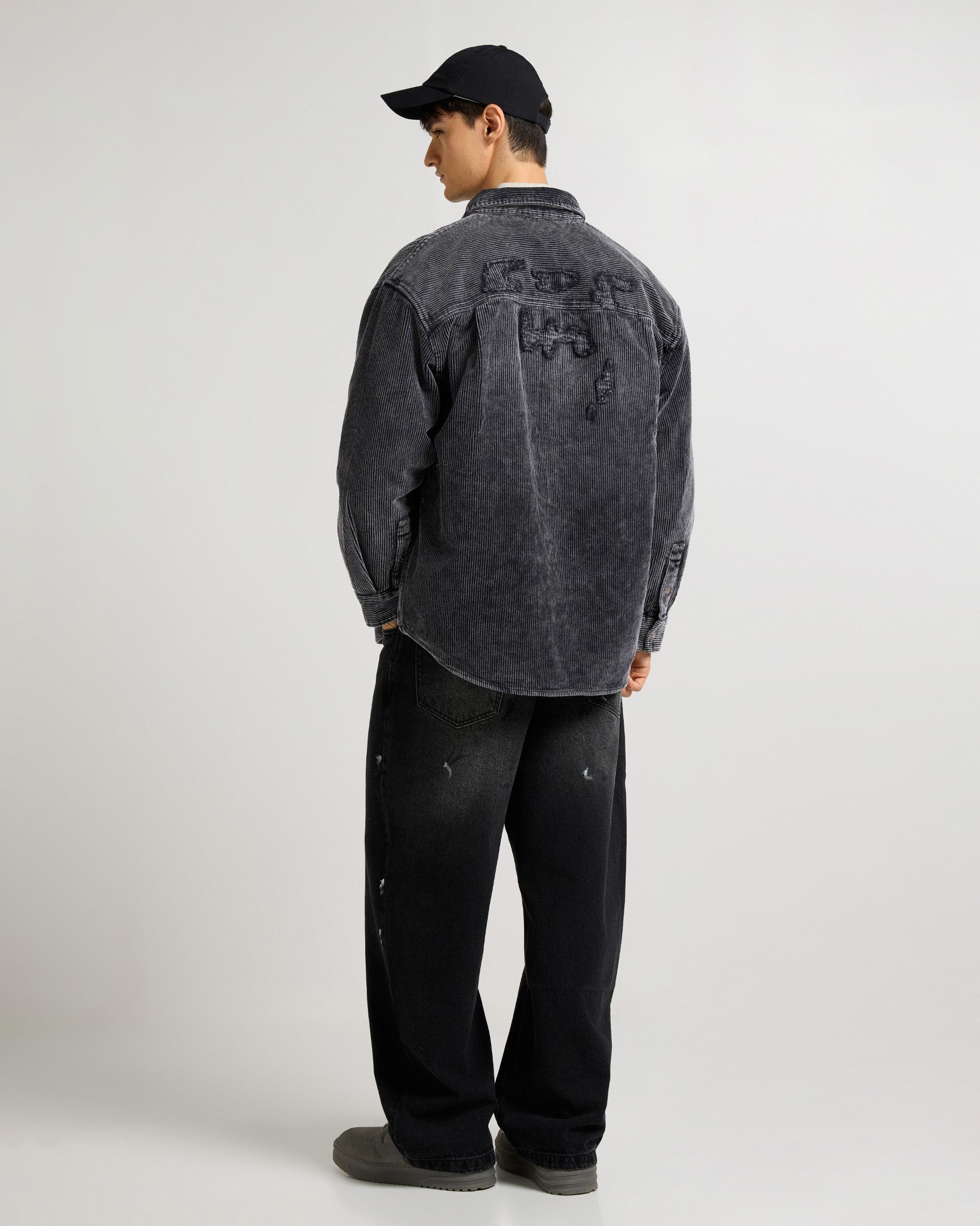 Relaxed Fit Charcoal Emroidered Curdroy Shacket