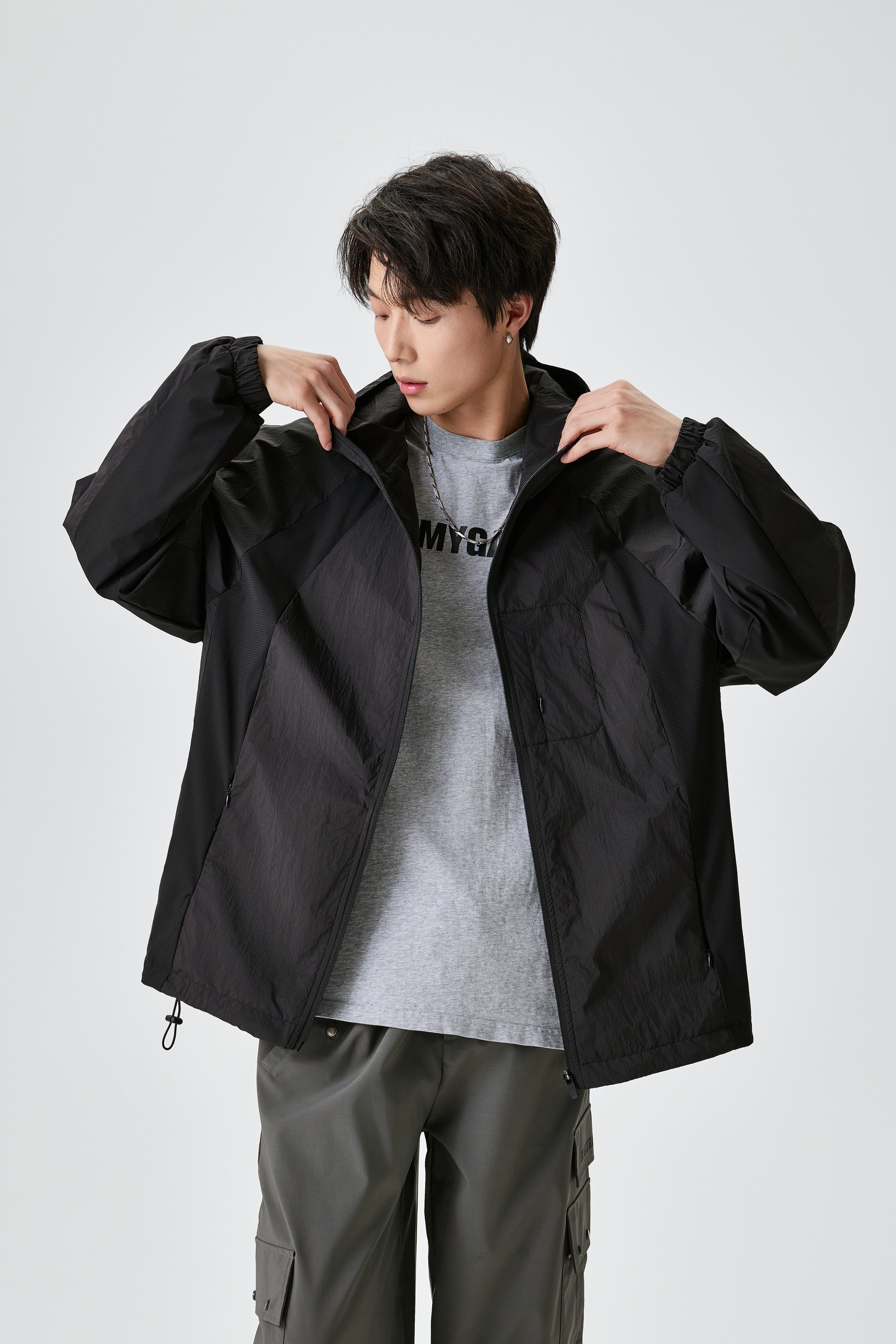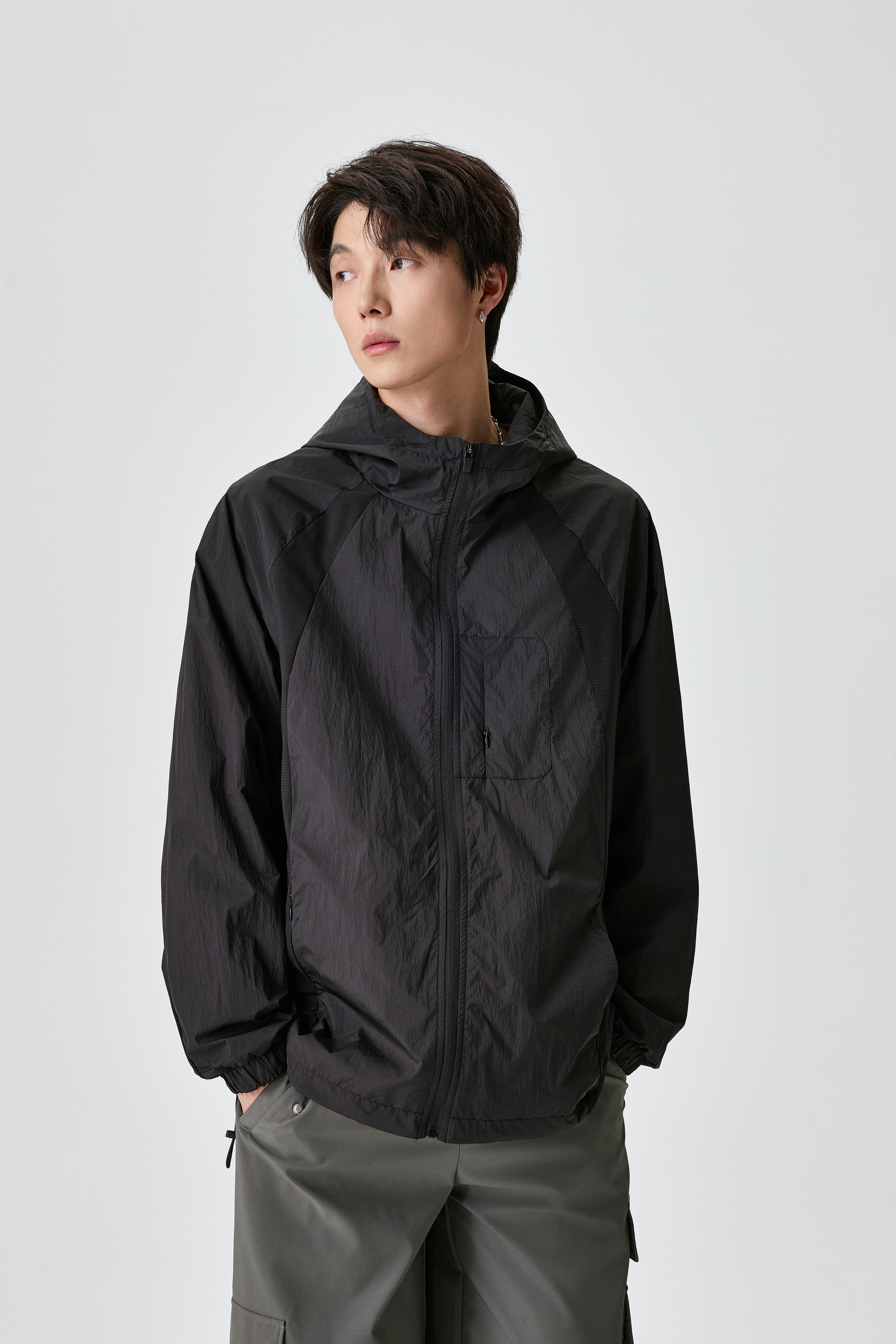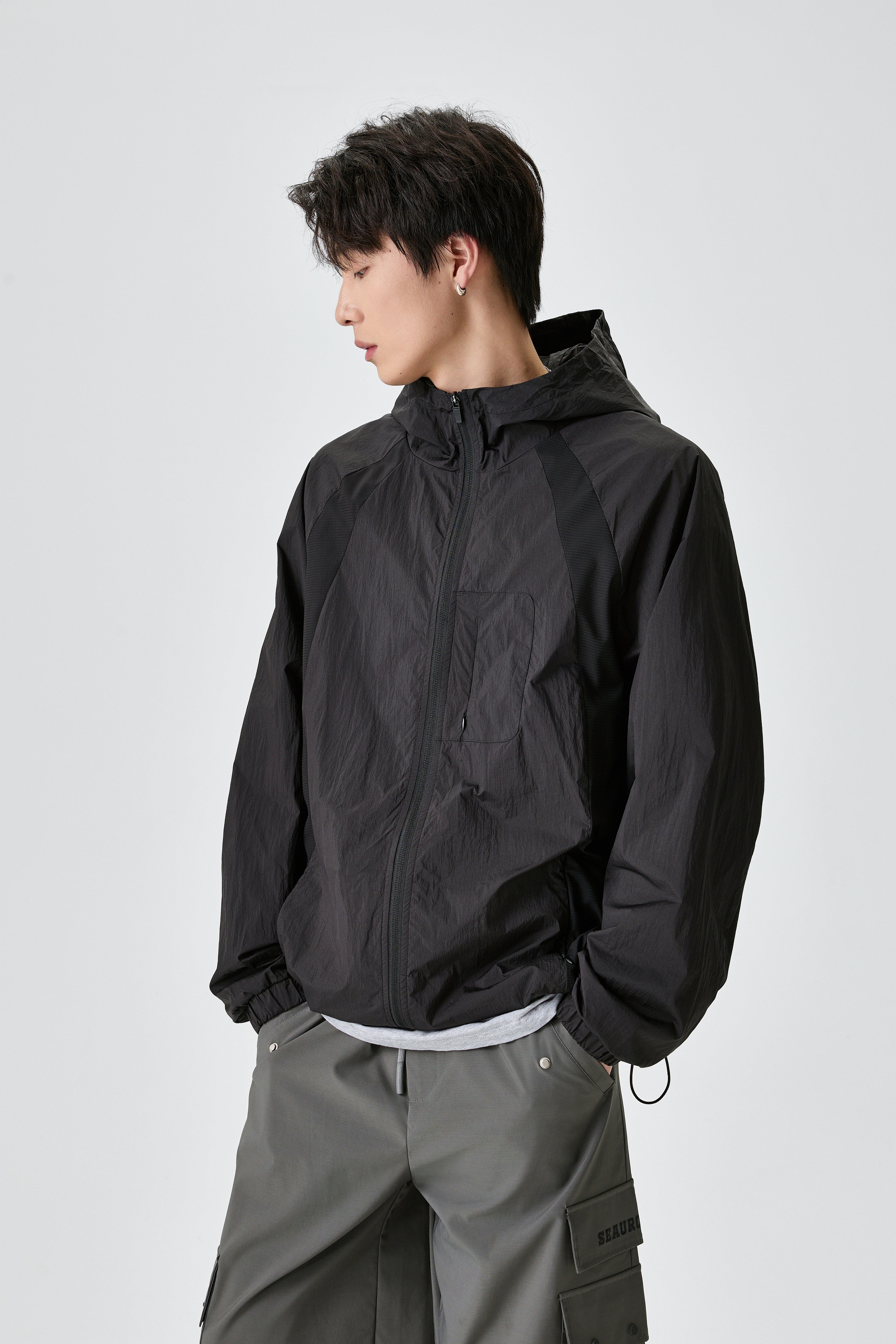 Unisex Light Hooded Black Track Jacket