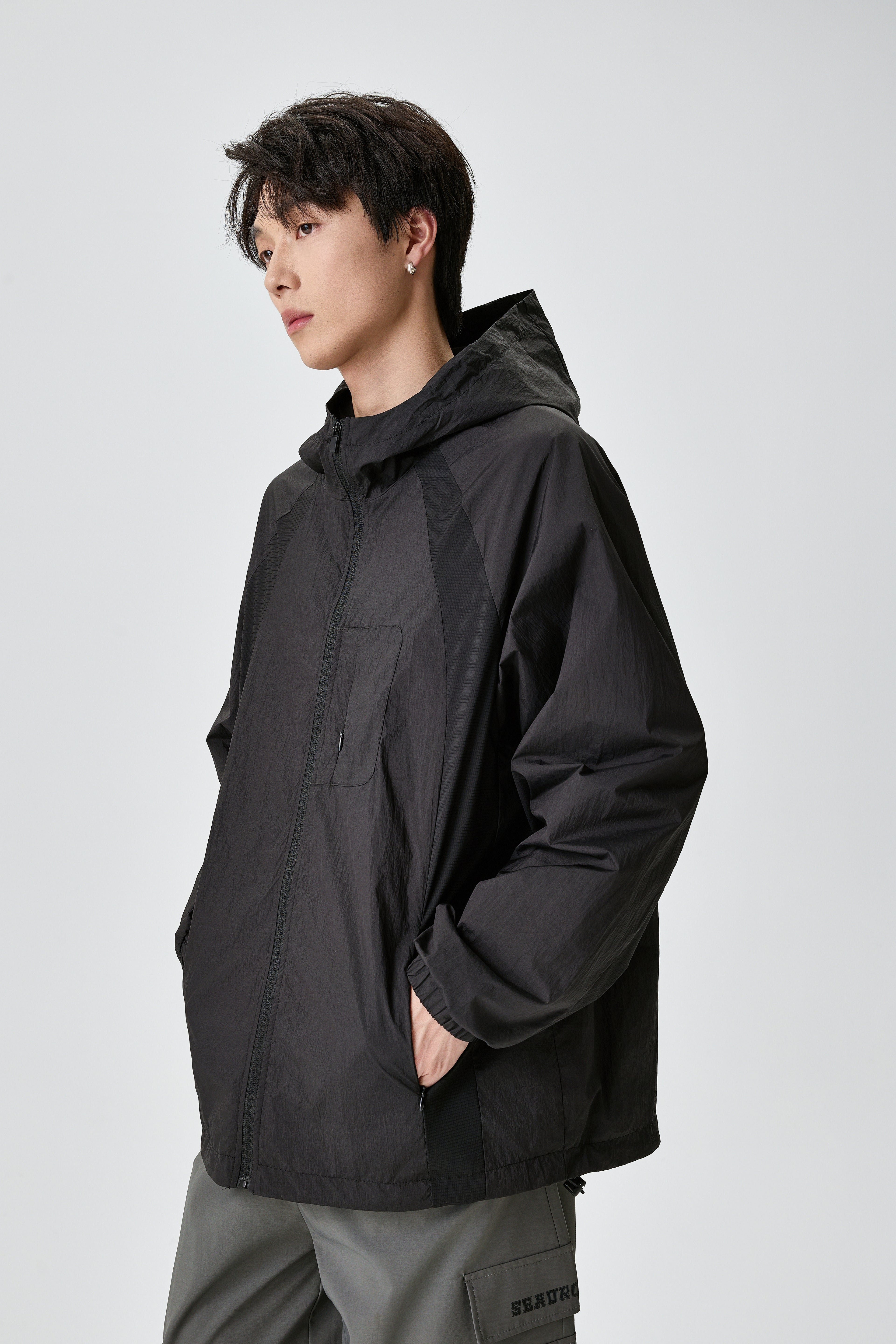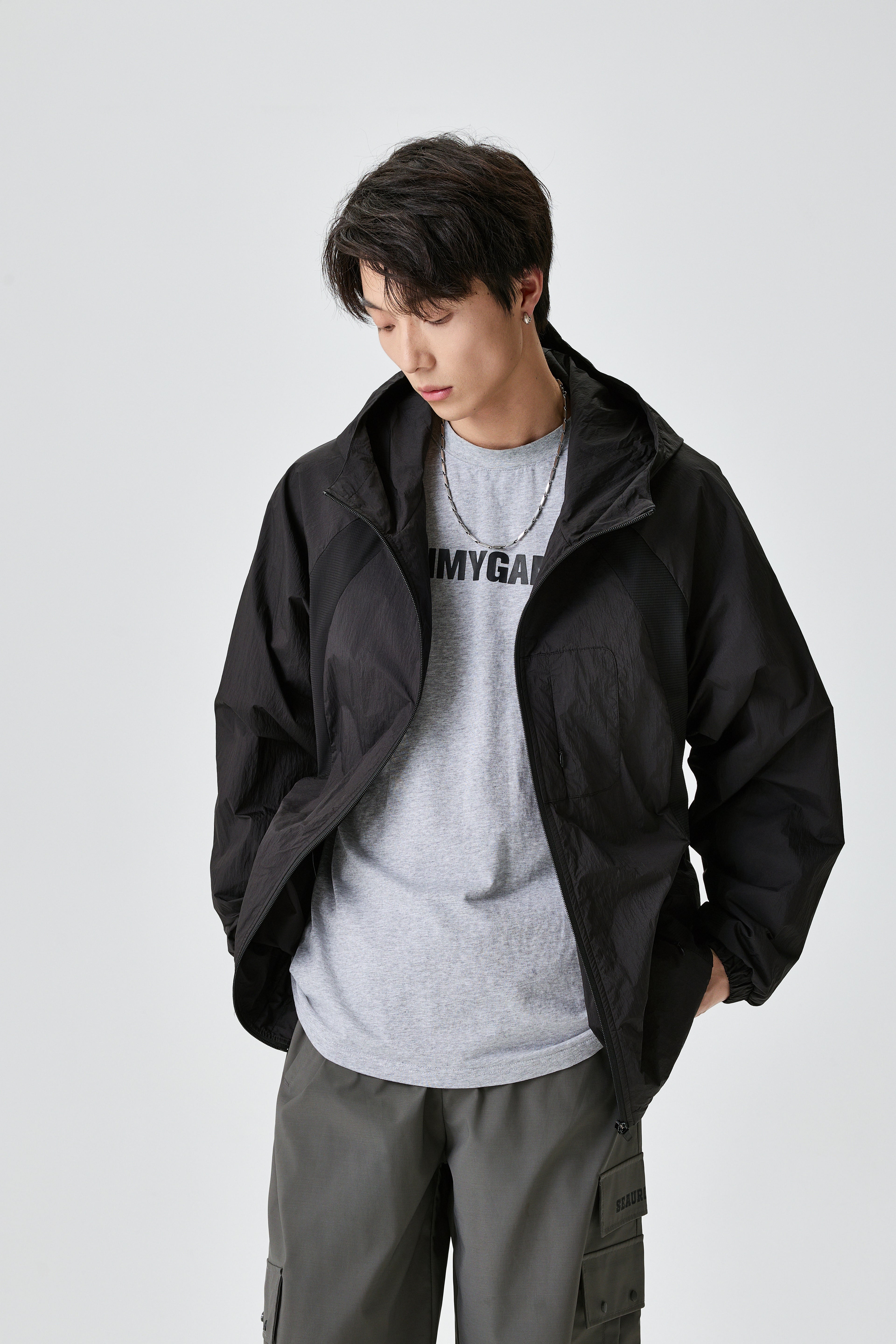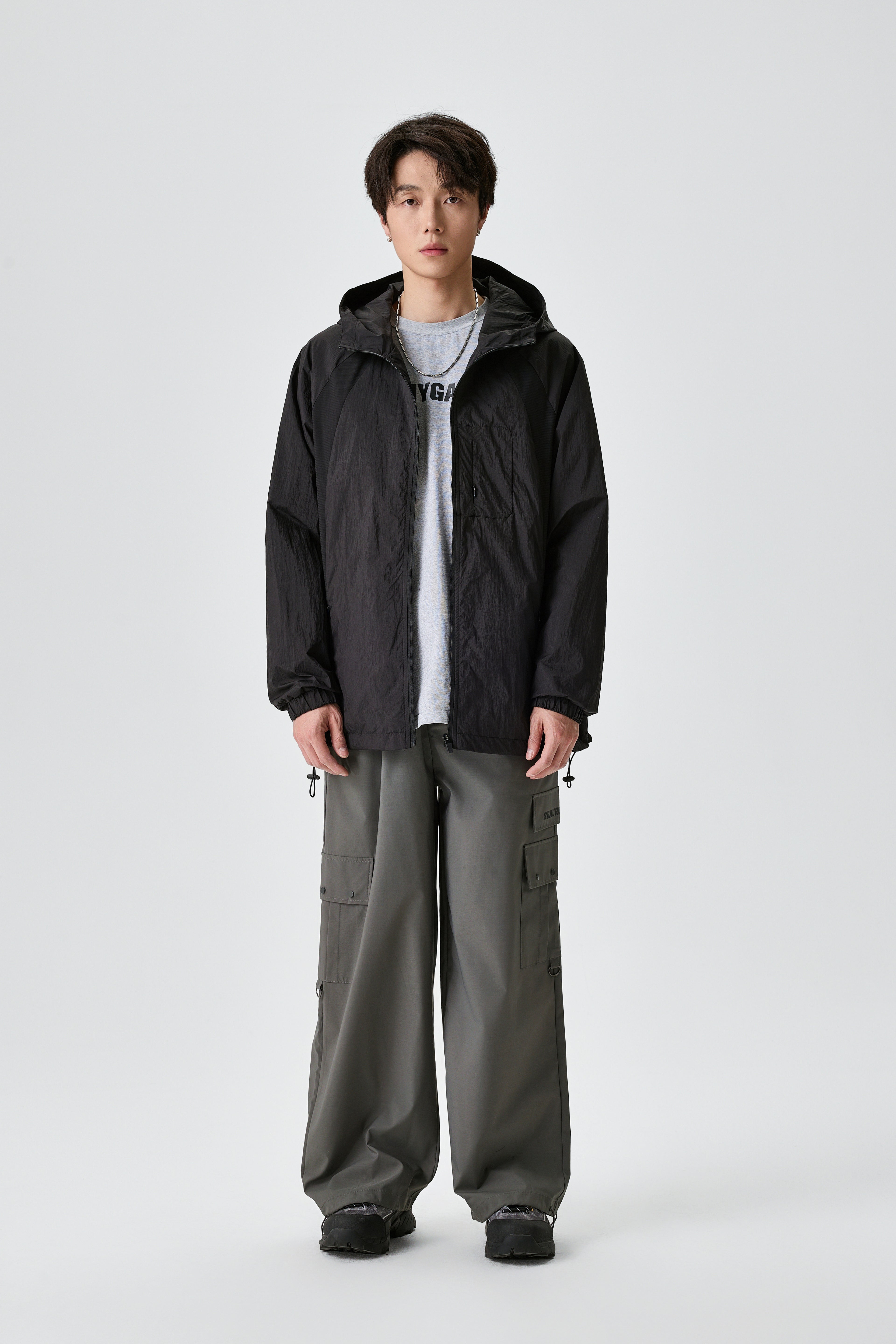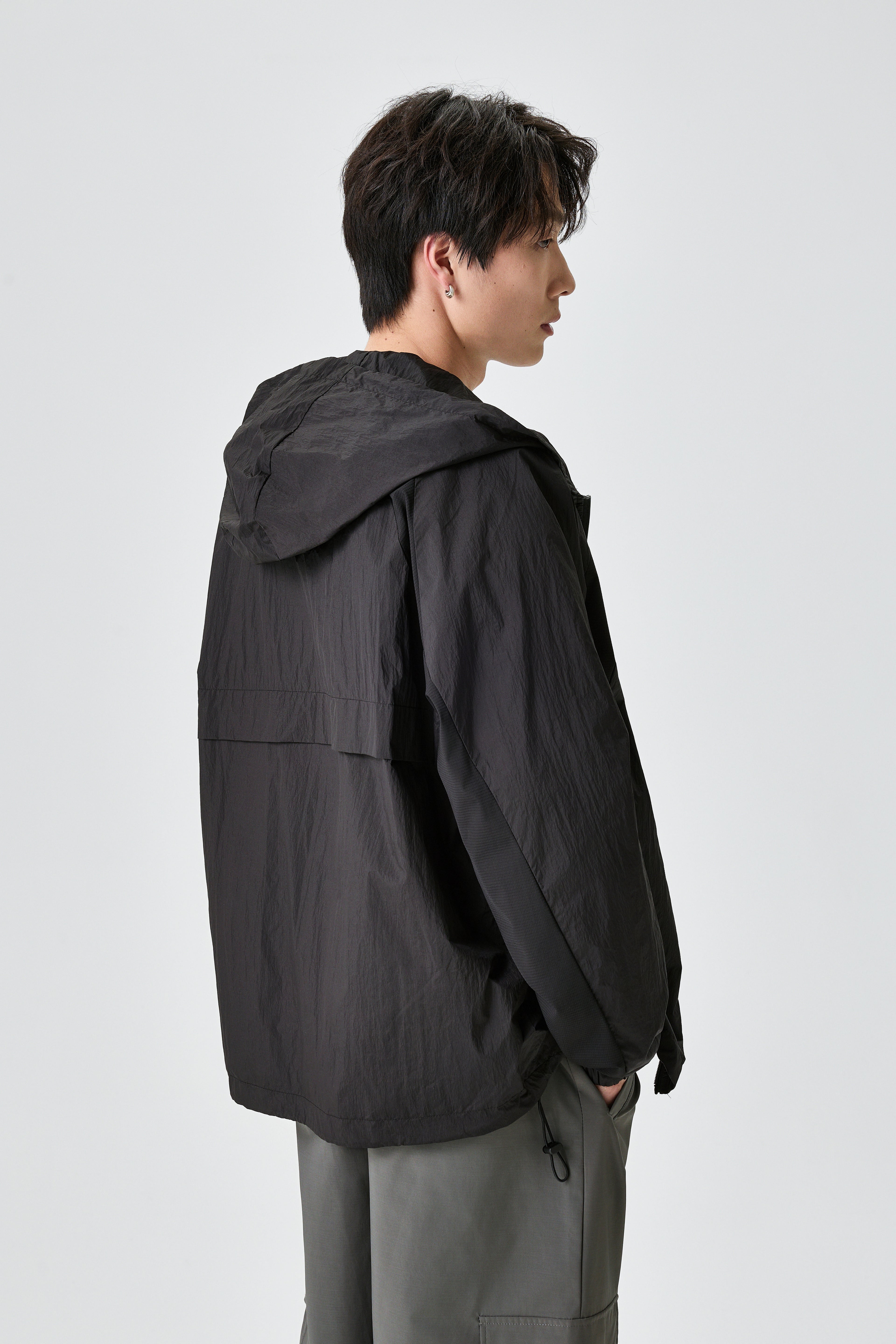 Unisex Light Hooded Black Track Jacket