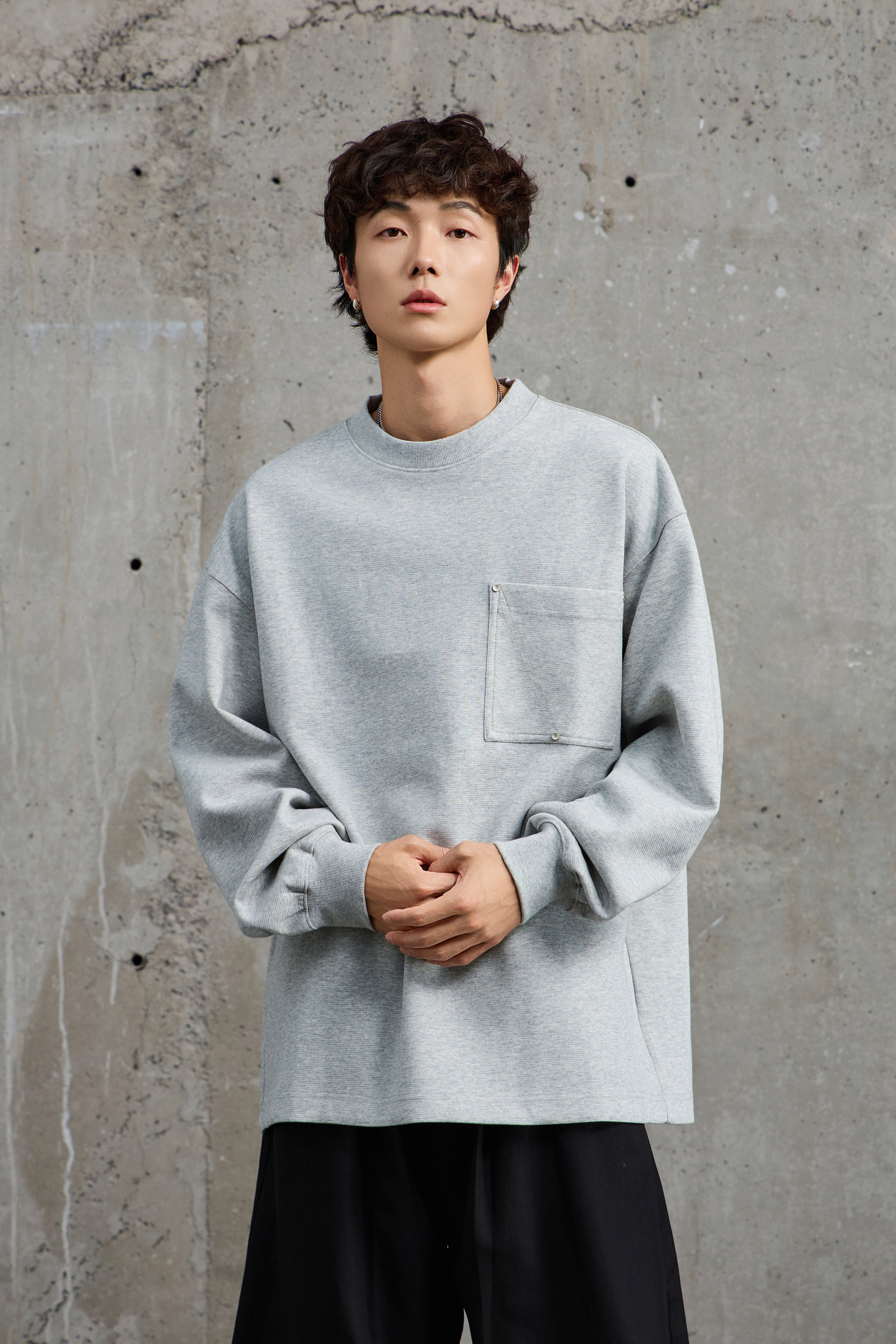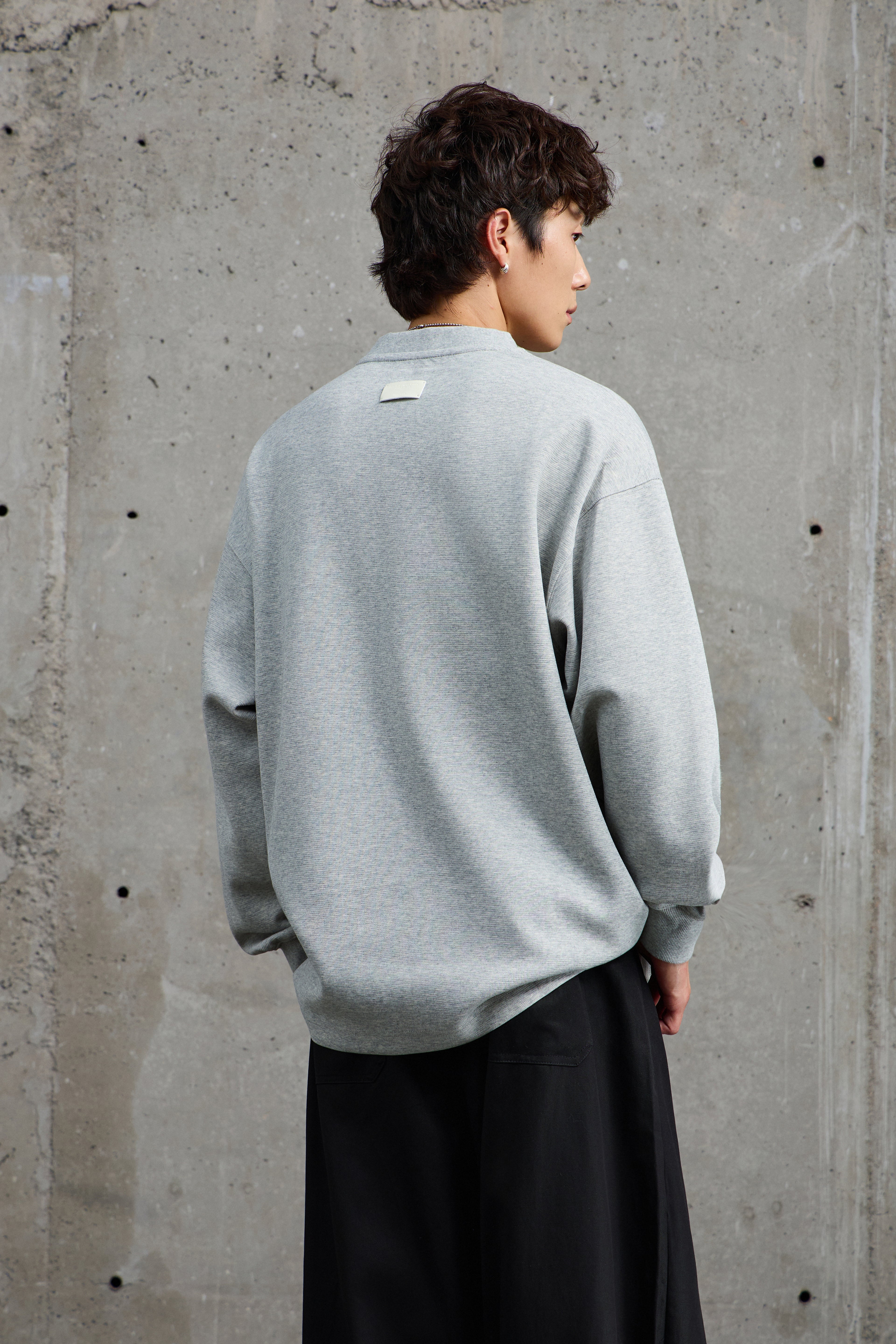 Unisex Grey Pullover With Button Accents